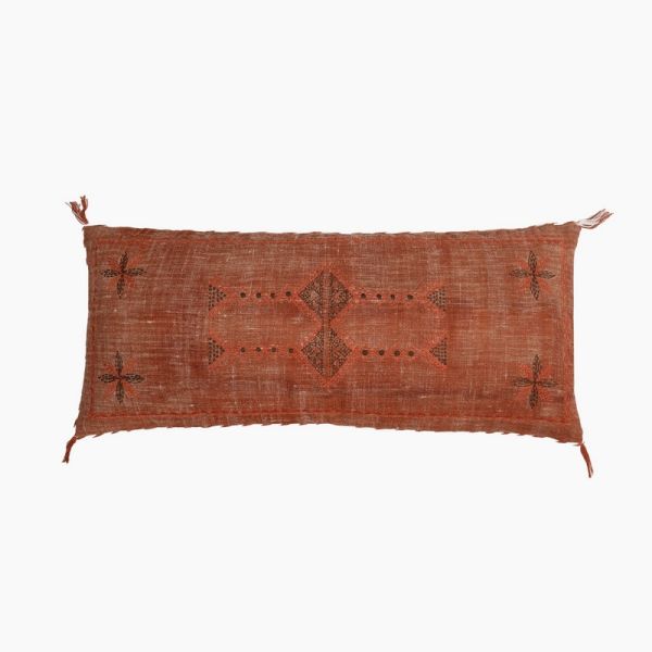 The Axel Coral Cushion exudes embroidered elegance, handcrafted from a blend of cotton and linen. The hand printed and stone washed coral base is adorned with intricate grey, charcoal and peach embroidered motifs. Tassels on the ends add a touch of global flair. Versatile and debonair, Axel is perfect for traditional, bohemian, and rustic styles.